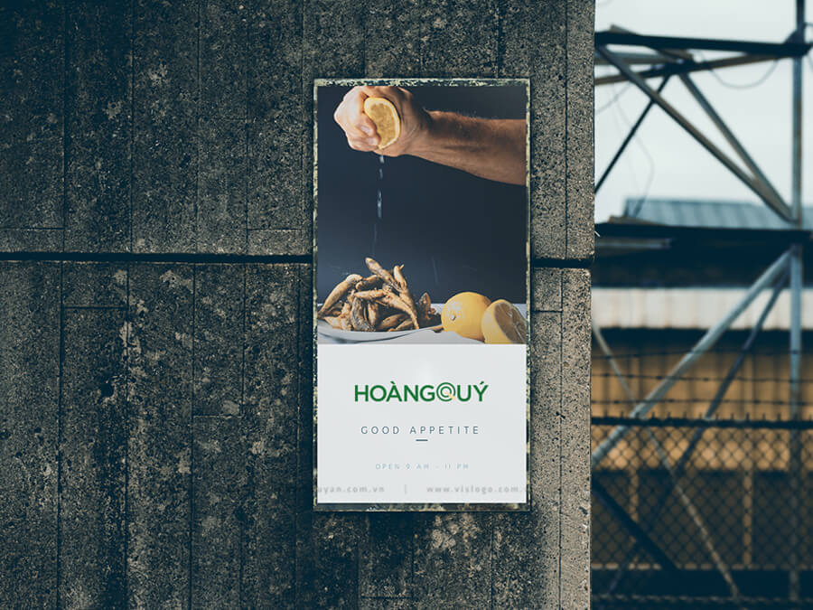 Nhà hàng Hoàng Quý chuyên kinh doanh về hải sản tươi sống tại Đồng Nai, đối tượng khách hàng là gia đình, công sở, nhân viên văn phòng. Logo thương hiệu được sáng tạo theo hướng hiện đại, sang trọng với hình ảnh cách điệu thể hiện lĩnh vực nhà hàng vào trong chữ Q của tên thương hiệu.