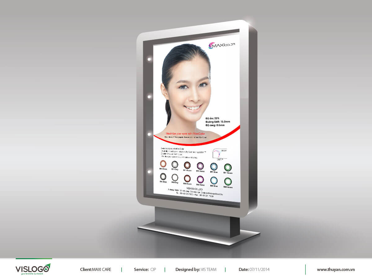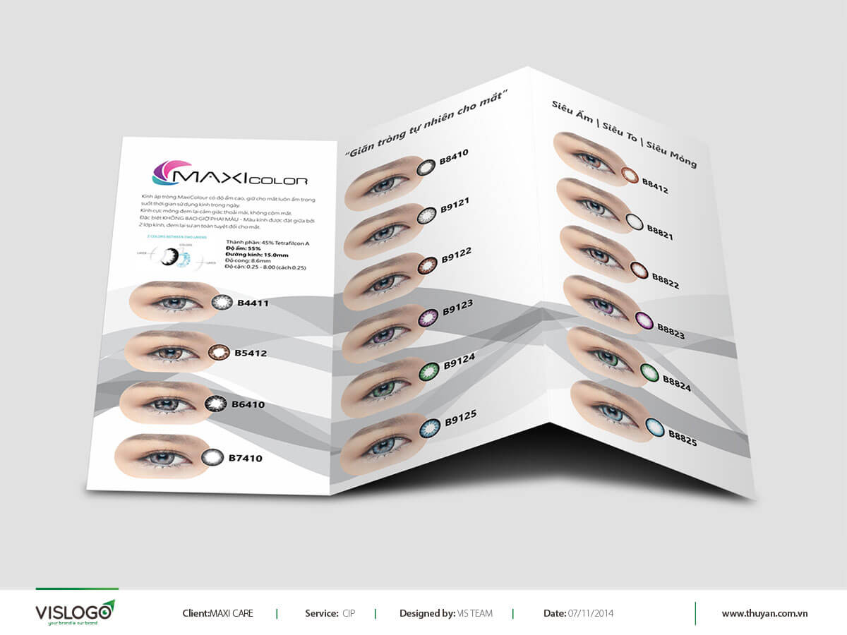 Thiết kế brochure, poster, bao bì - Thương hiệu kính áp tròng Maxi